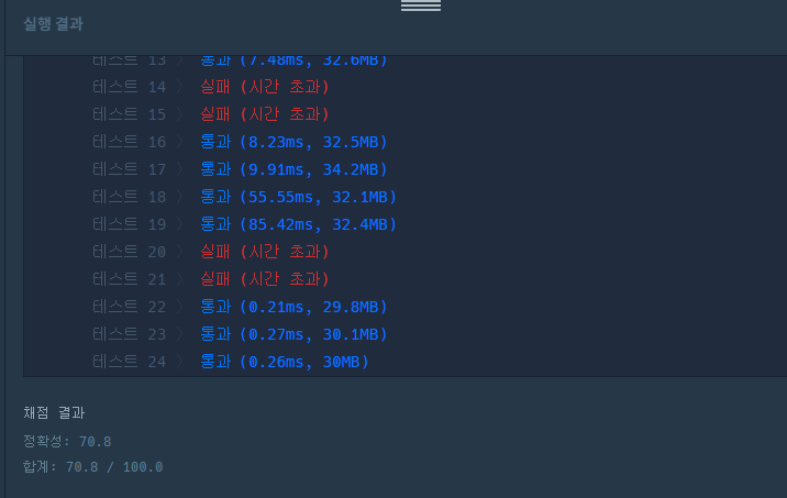 테스트 케이스 중 시간초과 발생...
